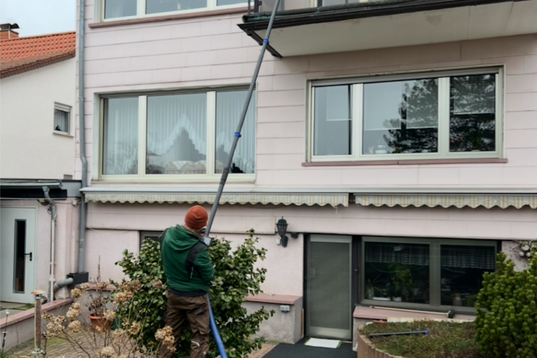 Unsere Fassadenreinigung mit moderner Lanzentechnik entfernt Schmutz, Algen und Ablagerungen gründlich und materialschonend – ohne den Einsatz eines Gerüsts. Mit schonender Hochdrucktechnik bringen wir Ihre Fassade wieder zum Strahlen, schützen sie vor Umwelteinflüssen und verlängern ihre Lebensdauer. Unsere Methode ist nachhaltig, effizient und sorgt für ein makelloses Erscheinungsbild Ihrer Immobilie.